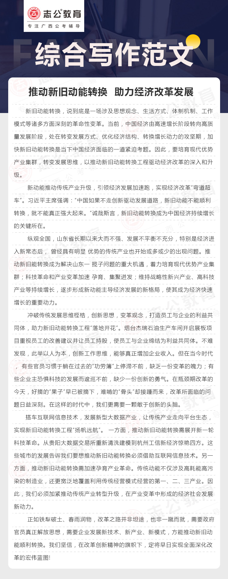 綜合寫作范文二:推動新舊動能轉(zhuǎn)換 助力經(jīng)濟(jì)改革發(fā)展