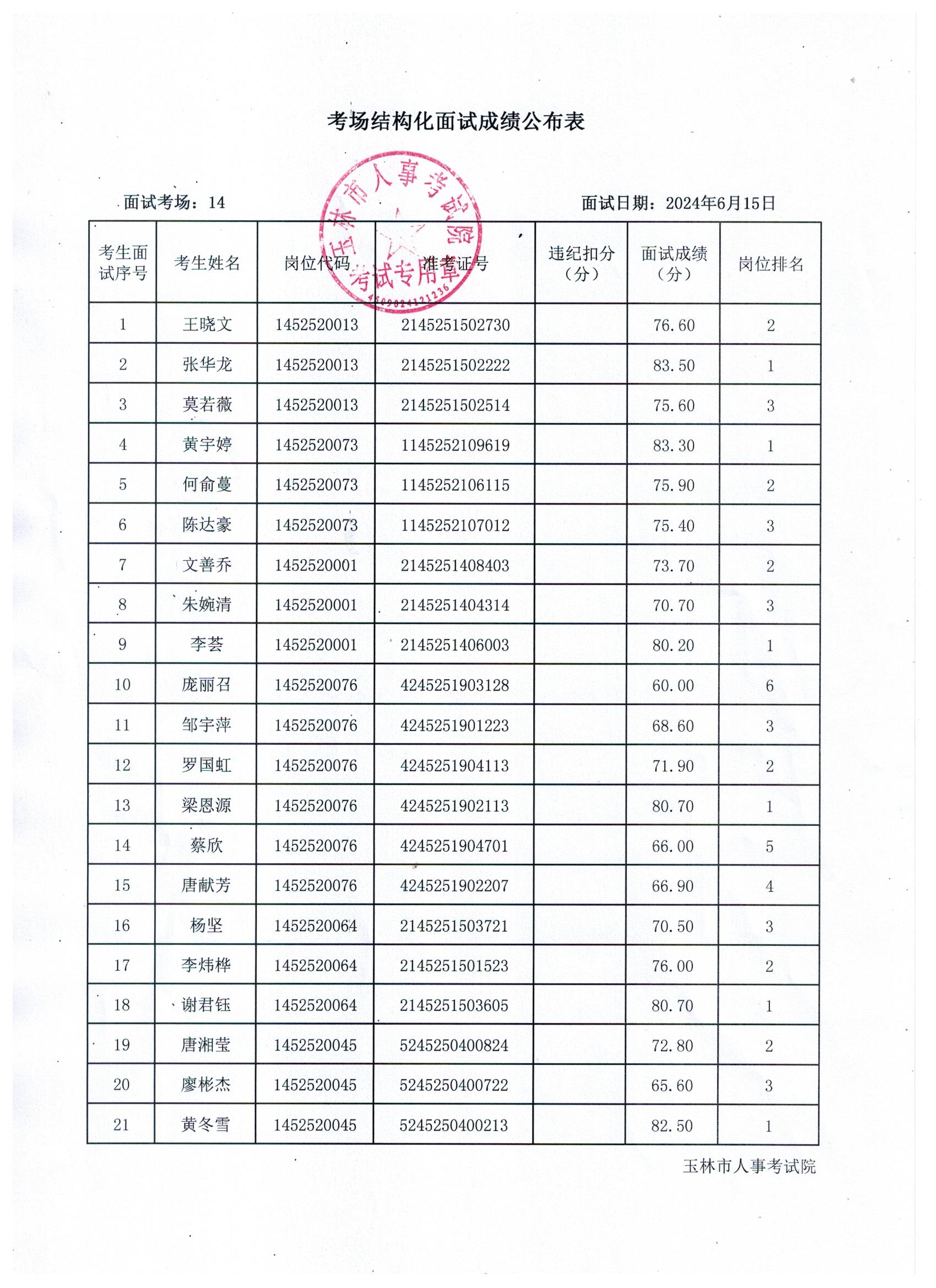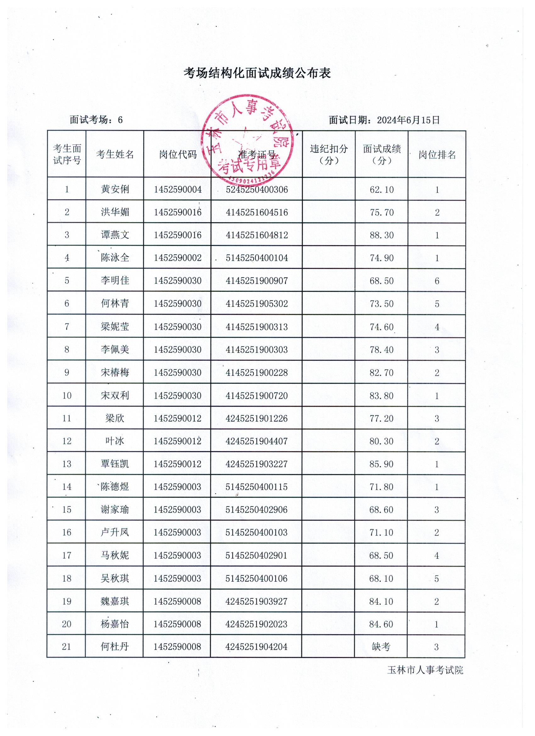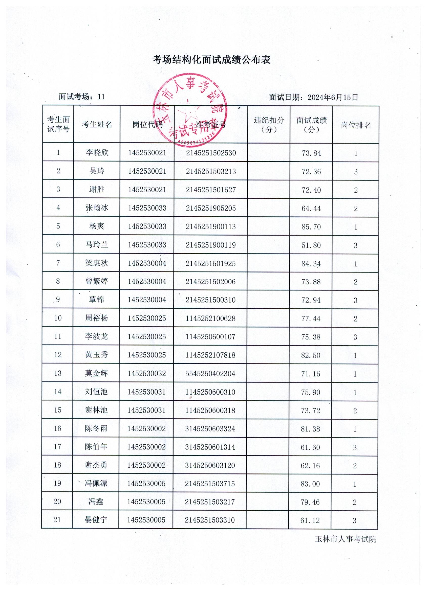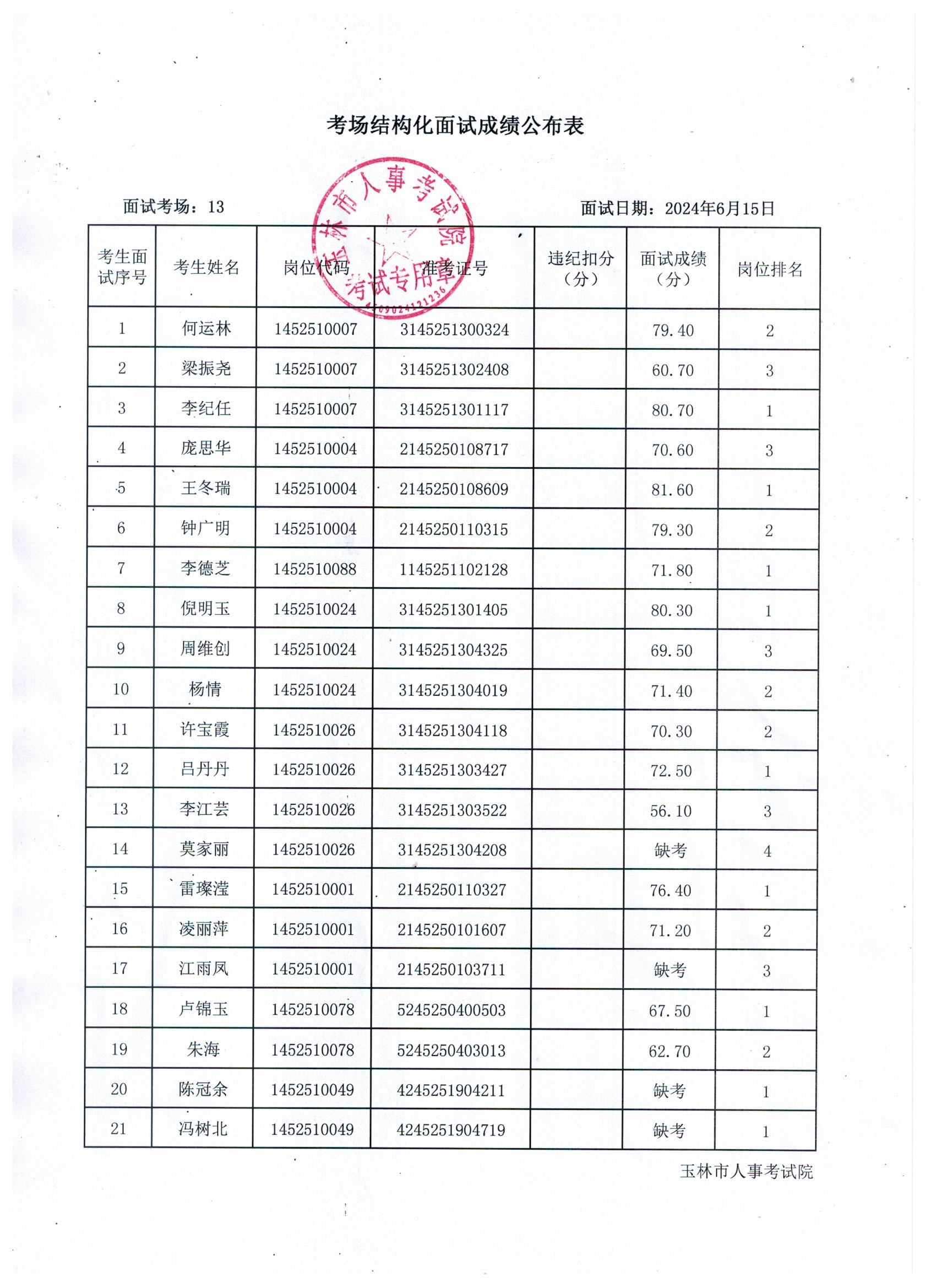 原文標題:2024年玉林市直(含玉州區(qū)、福綿區(qū)、玉東新區(qū))事業(yè)單位公開招聘人員面試成績公布(6月15日)