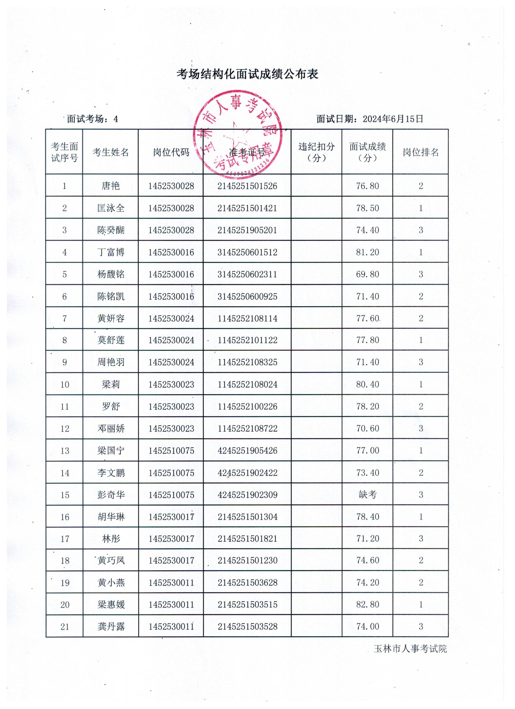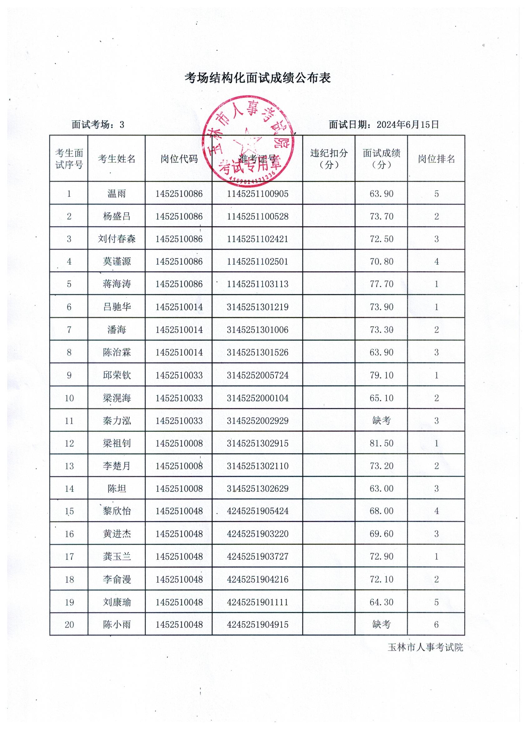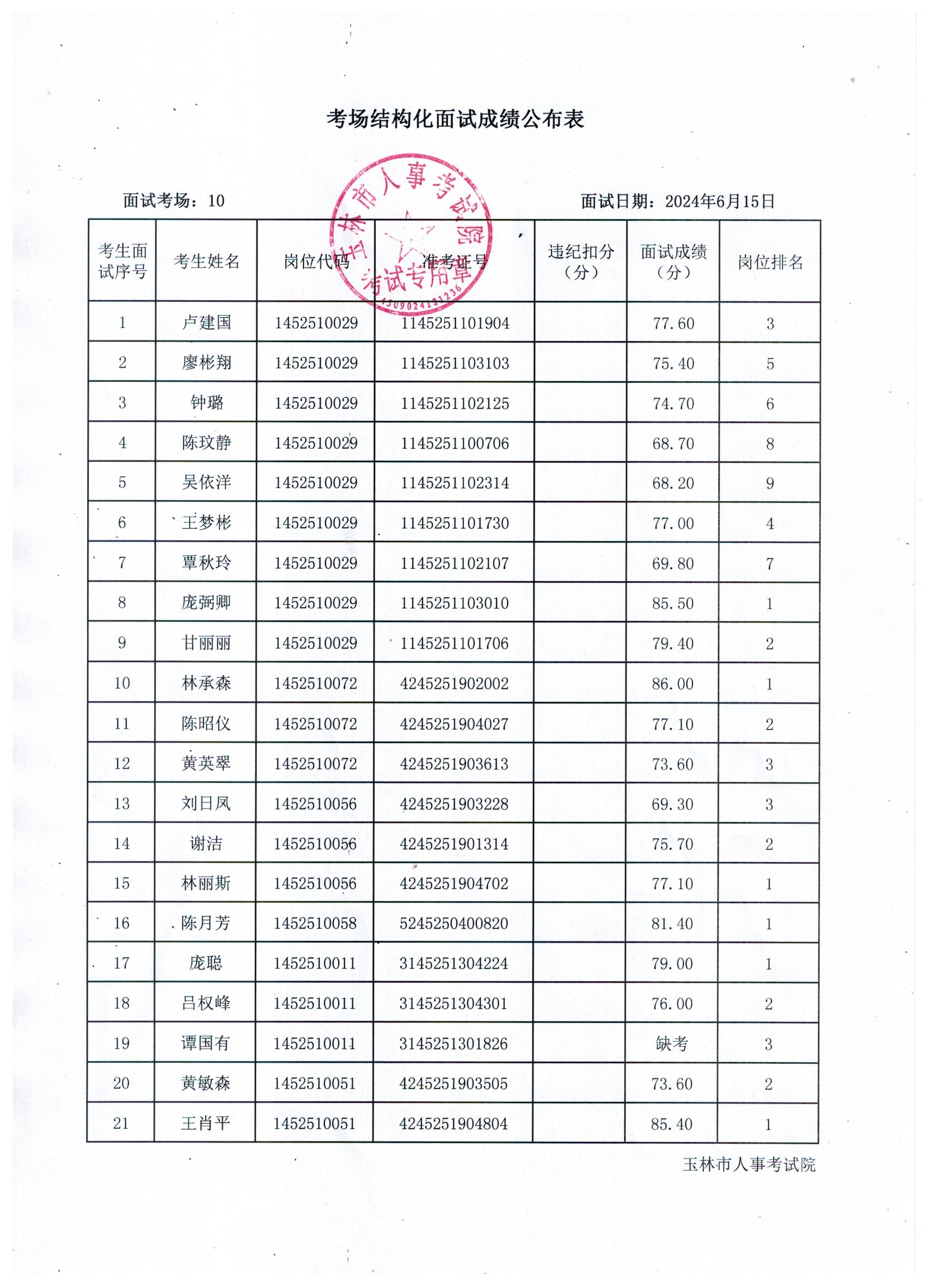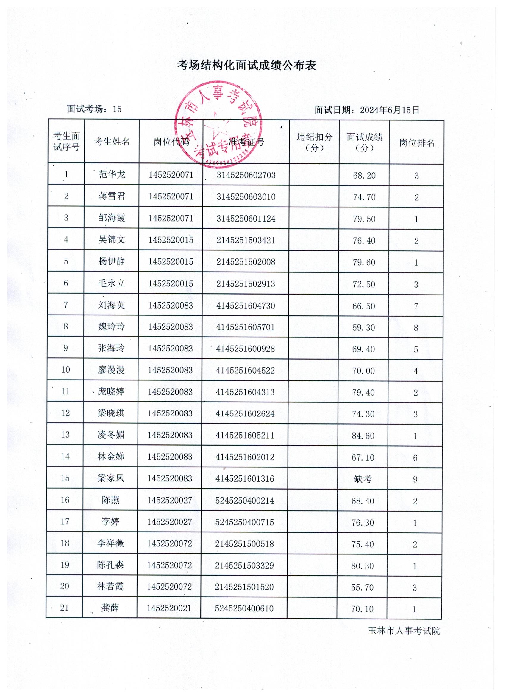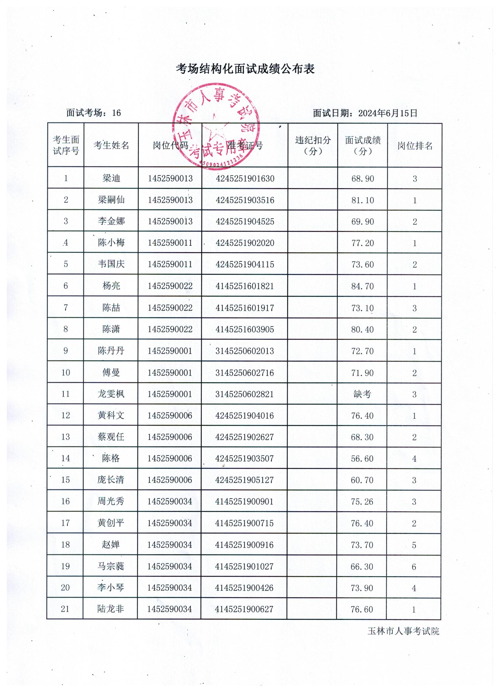 原文標題:2024年玉林市直(含玉州區(qū)、福綿區(qū)、玉東新區(qū))事業(yè)單位公開招聘人員面試成績公布(6月15日)