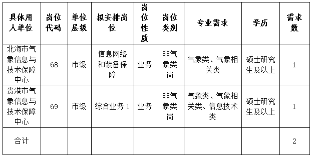 根據(jù)《氣象部門(mén)事業(yè)單位公開(kāi)招聘人員管理辦法》《廣西氣象部門(mén)2025年度事業(yè)單位公開(kāi)招聘工作方案》有關(guān)要求,廣西氣象部門(mén)增加招聘2025年應(yīng)屆畢業(yè)生筆試崗位(即非氣象類崗位)2個(gè)。具體事項(xiàng)公告如下: