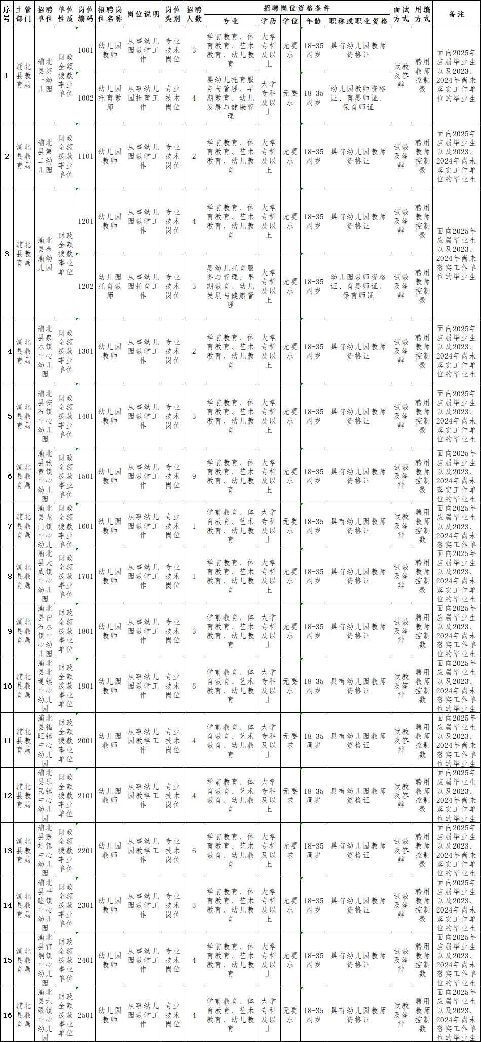 5.幼兒園崗位需大專及以上學(xué)歷,中職、高中、初中、小學(xué)崗位需本科及以上學(xué)歷,取得相應(yīng)的教師資格證書和普通話等級(jí)證書;2023、2024年畢業(yè)的高校畢業(yè)生在報(bào)名時(shí)必須提供相應(yīng)的學(xué)歷證書、教師資格證書。2025年畢業(yè)的普通高校應(yīng)屆考生在報(bào)名時(shí)未能獲得學(xué)歷證書、教師資格證書的,也可報(bào)名參加考試,但必須在上崗政審考核前提供學(xué)歷證書、教師資格證書原件,否則取消聘用資格。2023、2024年尚未落實(shí)工作單位的普通高校畢業(yè)生是指國(guó)家統(tǒng)一招生的普通高校畢業(yè)離校時(shí)和在國(guó)家規(guī)定的擇業(yè)期內(nèi)未落實(shí)工作單位,戶口、檔案、組織關(guān)系仍保留在原畢業(yè)學(xué)校或保留在各級(jí)畢業(yè)生就業(yè)主管部門(畢業(yè)生就業(yè)指導(dǎo)服務(wù)中心),各級(jí)人才交流服務(wù)機(jī)構(gòu)和各級(jí)公共就業(yè)服務(wù)機(jī)構(gòu)的畢業(yè)生。