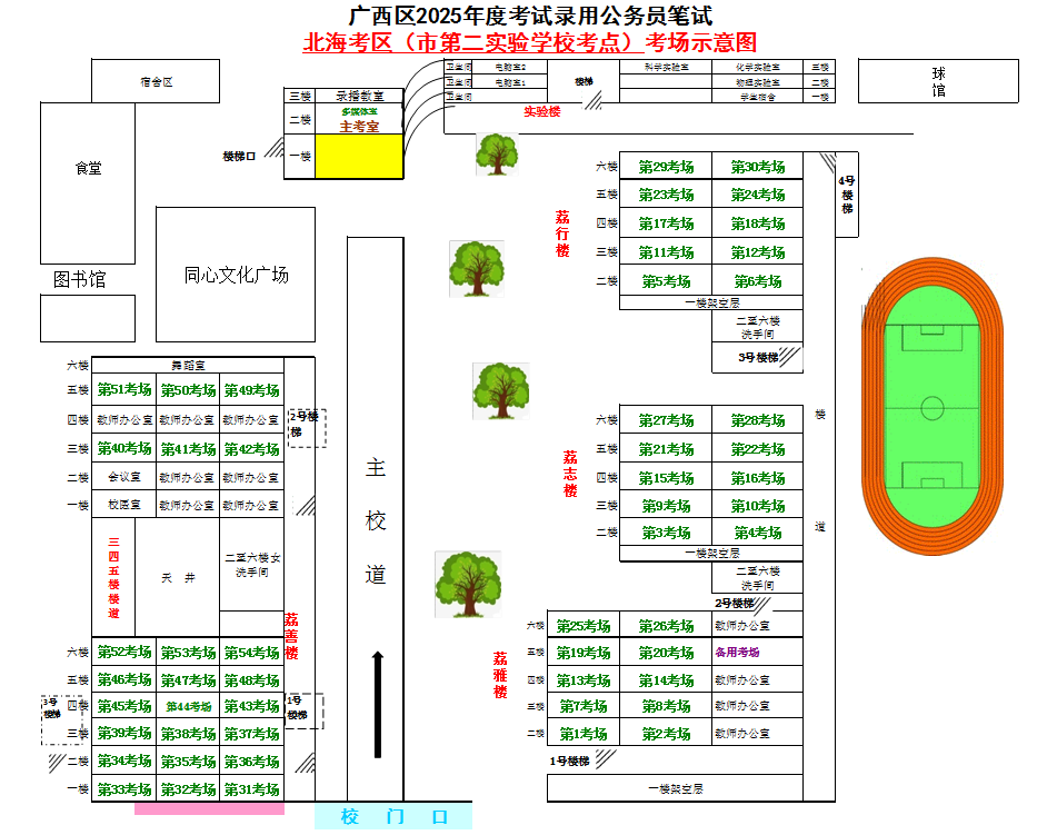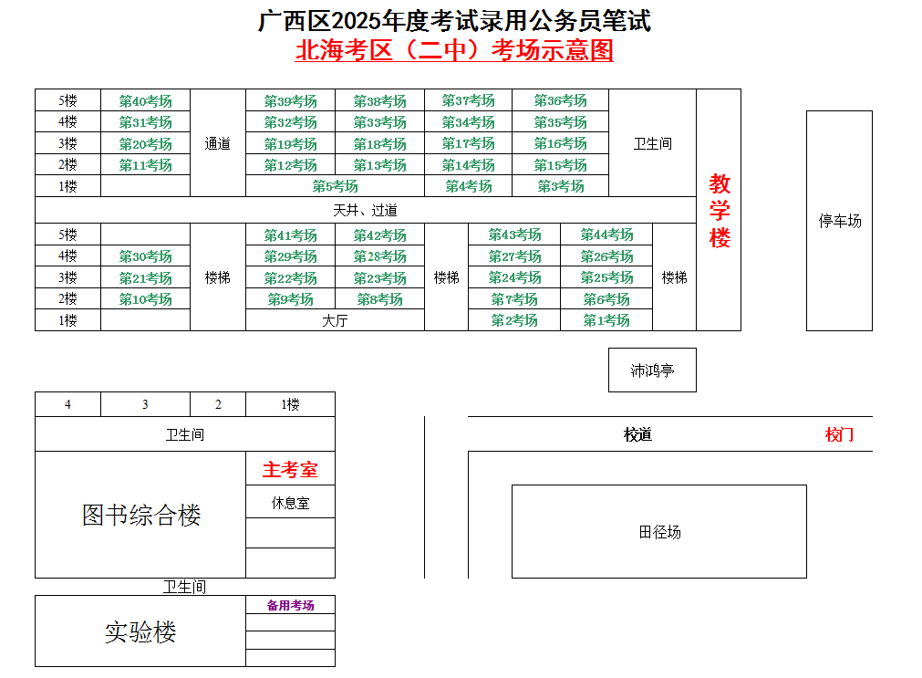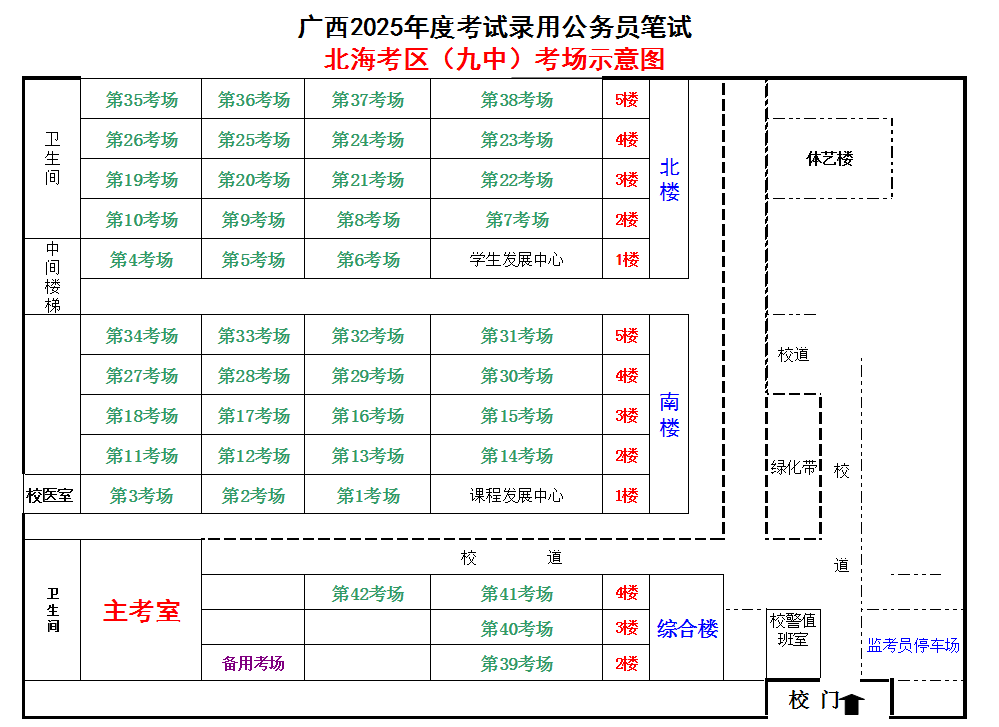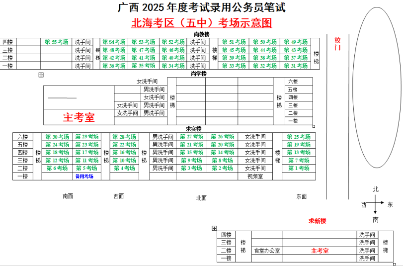 北??紖^(qū)共設置5個考點,具體考點考場布置分別如下: