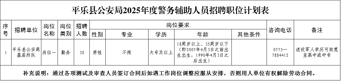 (四)本公告未盡事宜,由平樂(lè)縣公安局公開招聘工作領(lǐng)導(dǎo)小組辦公室負(fù)責(zé)解釋。
