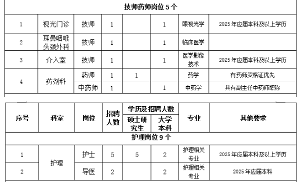 1.思想政治素質(zhì)好,擁護(hù)黨的路線、方針、政策。2.遵紀(jì)守法,醫(yī)德品行良好,有較強(qiáng)的事業(yè)心、責(zé)任心和進(jìn)取心。3.身體健康,能滿足應(yīng)聘崗位需要。4.具備相應(yīng)的學(xué)歷和學(xué)位,有履行應(yīng)聘崗位職責(zé)的專業(yè)能力、技能條件。5.具有團(tuán)隊(duì)精神,有良好的溝通能力。6.具備應(yīng)聘崗位所需要的其他條件。7.服從單位安排。