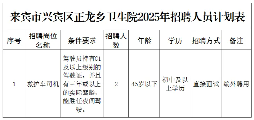 原文標(biāo)題:來(lái)賓市興賓區(qū)正龍鄉(xiāng)衛(wèi)生院2025年公開招聘編外人員公告
