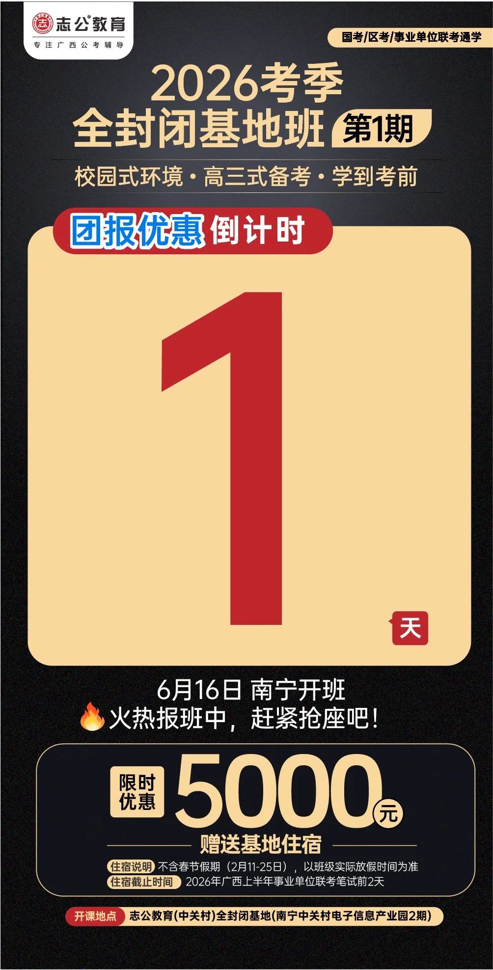 志公教育(中關村)全封閉基地于2024年12月16日正式開業(yè),總面積達十萬平方空間,是廣西ZUI大的全封閉公考學習基地。這里擁有全新升級的場地,空間布局合理,教學設施完備。寬敞明亮的教室,為學員提供舒適的學習環(huán)境;功能齊全的自習室,滿足學員隨時沉浸學習的需求。