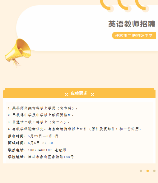 原文標(biāo)題:桂林市二塘初級(jí)中學(xué)招聘英語(yǔ)老師一名
