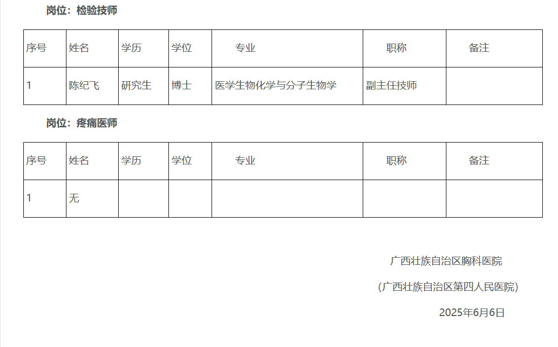 自治區(qū)胸科醫(yī)院2025年度高層次人才公開招聘實名編制工作人員報名通過資格審查人員名單