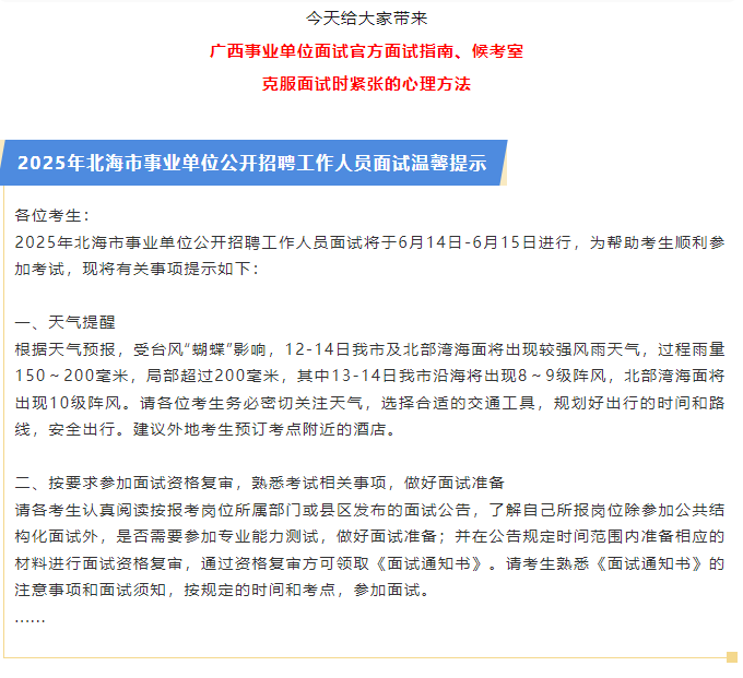 后天面試!快看25年廣西事業(yè)單位面試考場(chǎng)示意圖、克服面試緊張心理方法!