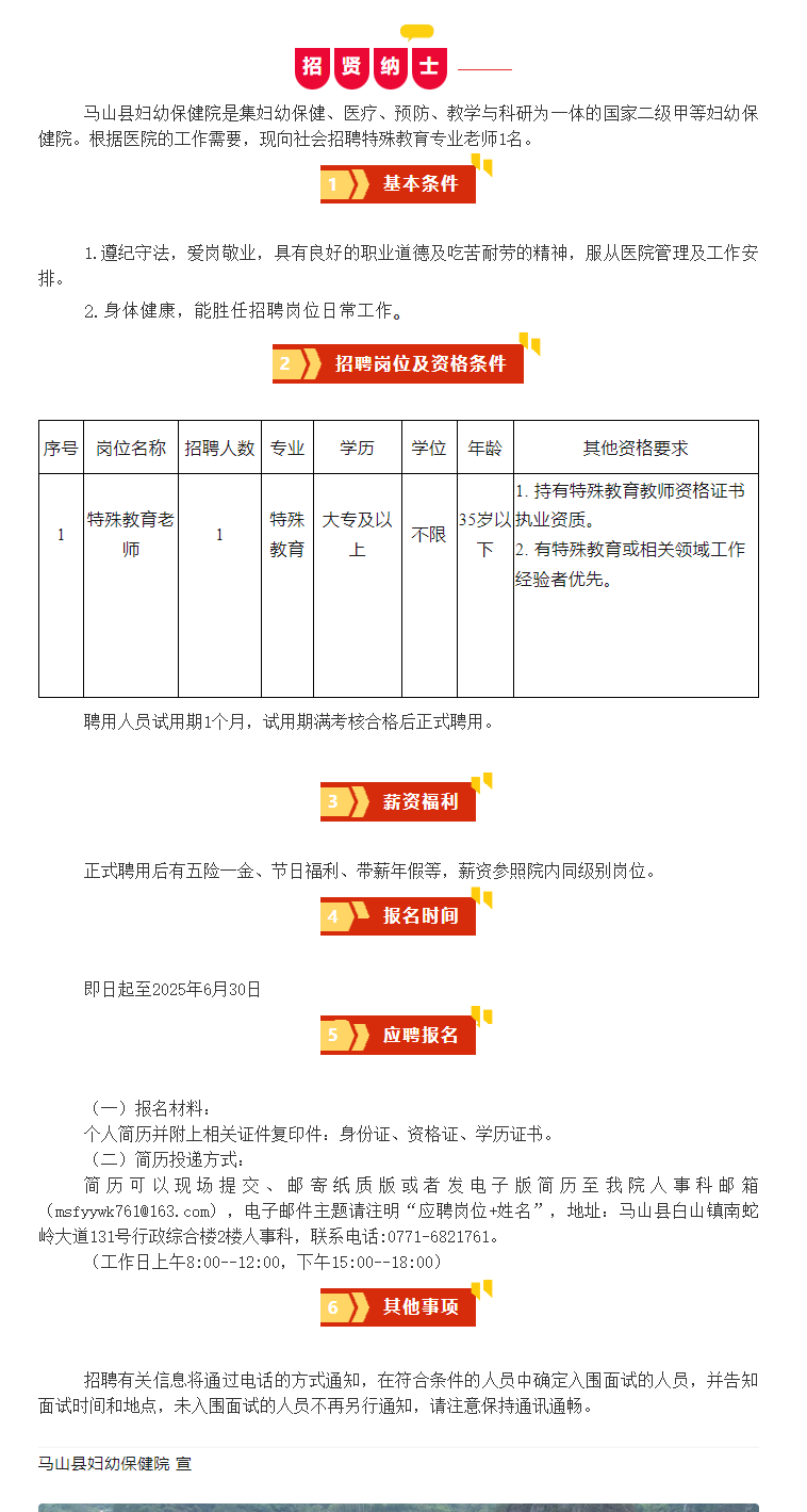 原文標(biāo)題:馬山縣婦幼保健院招聘特殊教育專業(yè)老師公告