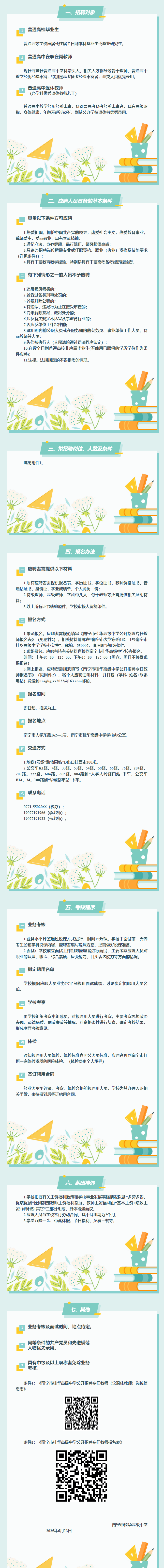 南寧市桂華高級中學(xué)2025年公開招聘高中各學(xué)科專任教師(含退休教師)的公告