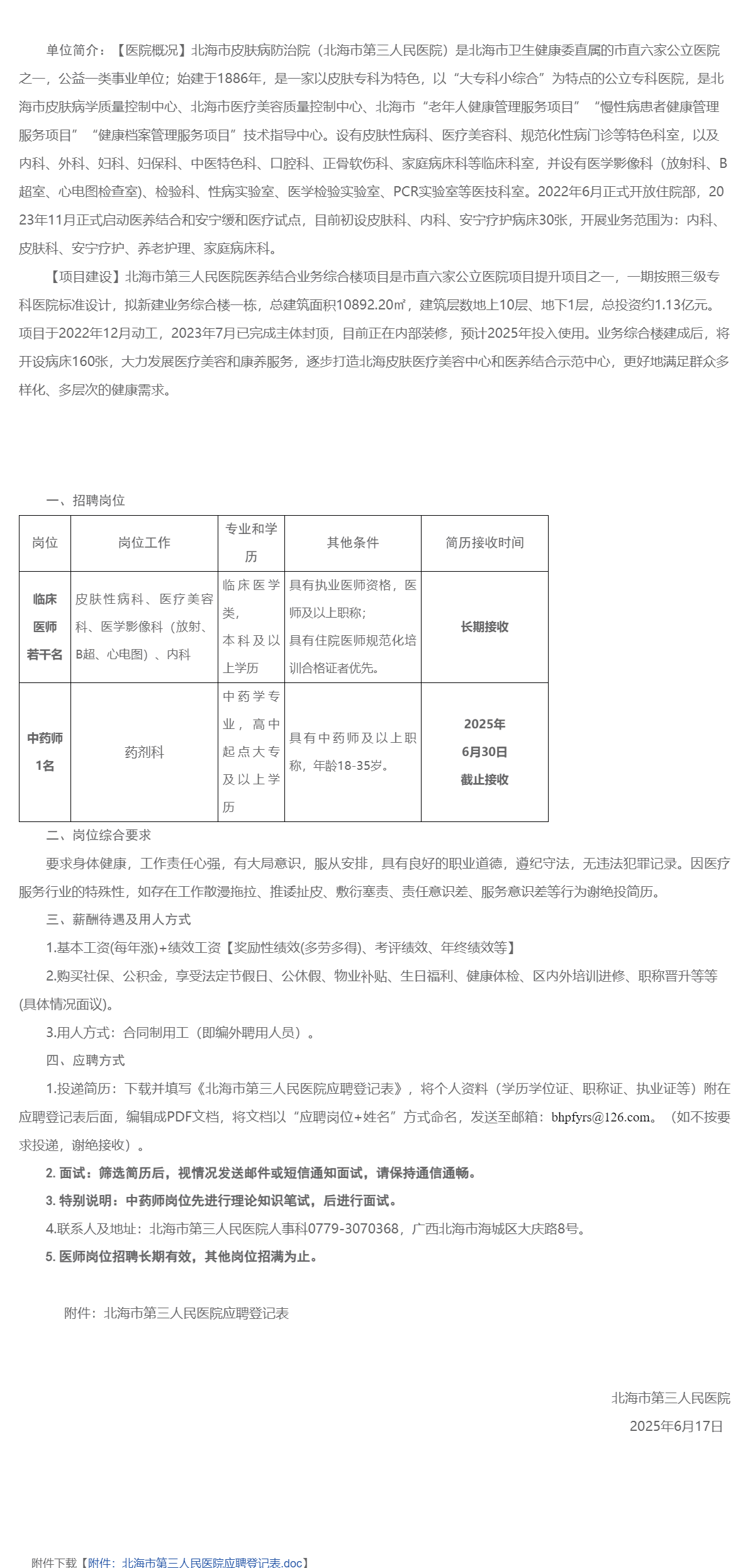 2025年北海市第三人民醫(yī)院招聘若干名