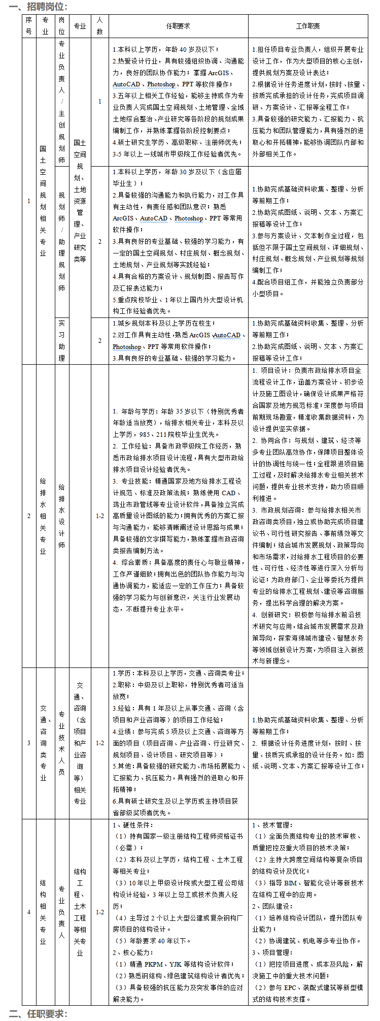 4.應聘技術(shù)人員具有一線城市甲級設計院3年以上工作經(jīng)歷者優(yōu)先。