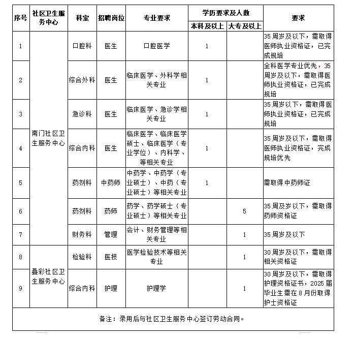 根據(jù)社區(qū)衛(wèi)生服務中心工作需要,現(xiàn)將2025年度(第二批)招聘崗位及有關事項公布如下: