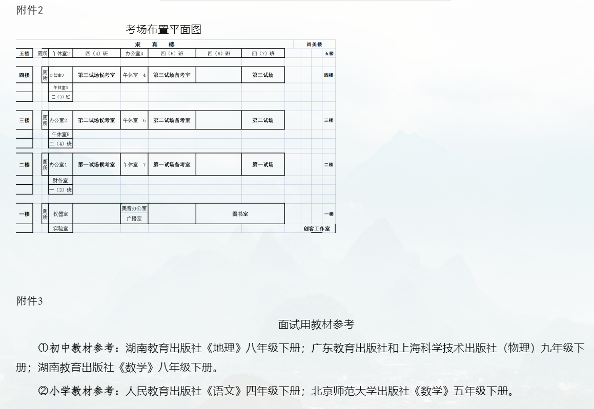 第三試場(chǎng):農(nóng)村初中地理、農(nóng)村初中物理、農(nóng)村初中數(shù)學(xué)。