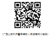 5.網(wǎng)上報名:應聘人員登錄廣西公安機關(guān)警務輔助人員招聘網(wǎng)(https://fjgl.gat.gxzf.gov.cn:9099/)或掃描以下二維碼進行網(wǎng)上報名。