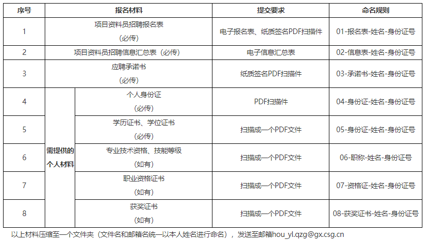 應(yīng)聘人員須按以下要求提供材料: