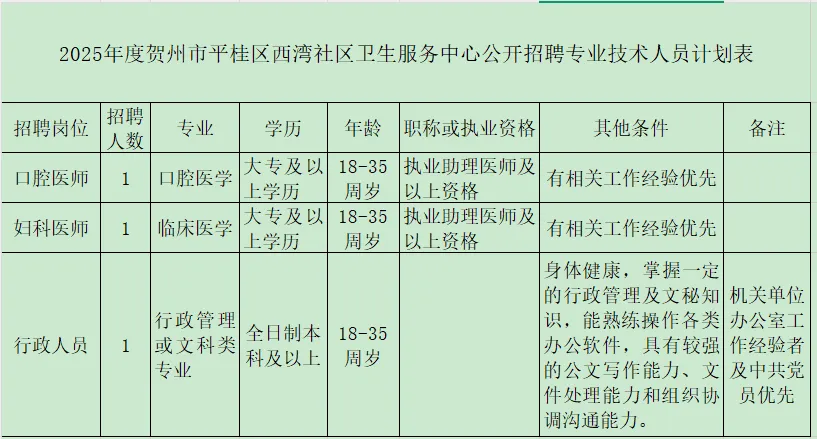 2025年賀州市平桂區(qū)西灣社區(qū)衛(wèi)生服務中心招聘公告