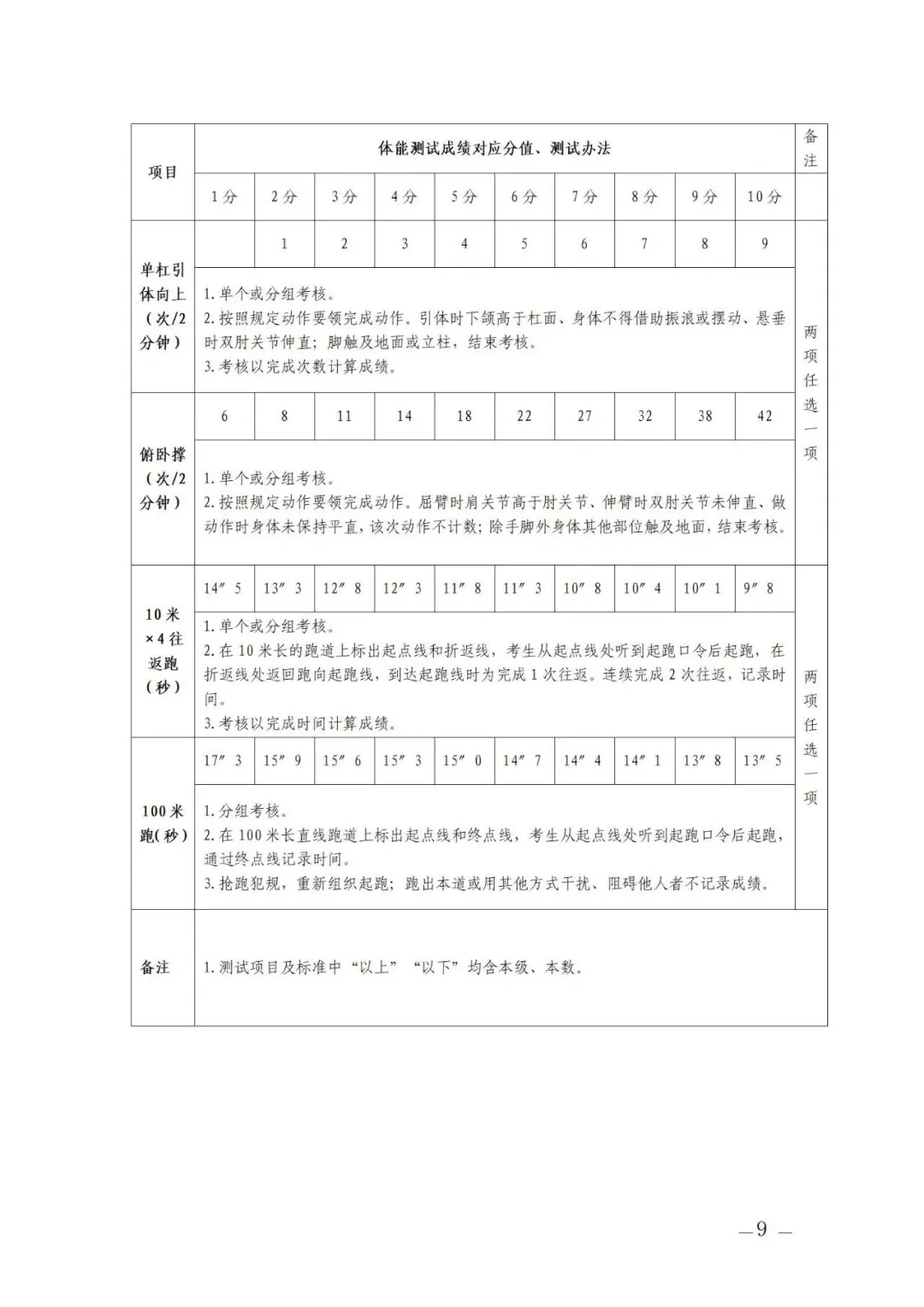 (2)選考項目:①立定跳遠(yuǎn)、原地跳高二選一