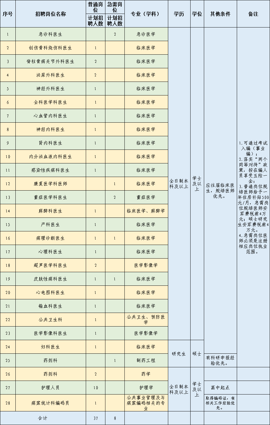 2.具有規(guī)培合格證的醫(yī)生依照國衛(wèi)辦科教發(fā)〔2021〕18號(hào)文件,落實(shí)“兩個(gè)同等對(duì)待”政策,即“面向社會(huì)招收的普通高校應(yīng)屆畢業(yè)生培訓(xùn)對(duì)象培訓(xùn)合格當(dāng)年在醫(yī)療衛(wèi)生機(jī)構(gòu)就業(yè)的,在招聘、派遣、落戶等方面,按當(dāng)年應(yīng)屆畢業(yè)生同等對(duì)待。對(duì)經(jīng)住培合格的本科學(xué)歷臨床醫(yī)師,在人員招聘、職稱晉升、崗位聘用、薪酬待遇等方面,與臨床醫(yī)學(xué)、中醫(yī)專業(yè)學(xué)位碩士研究生同等對(duì)待”。普通崗位規(guī)培醫(yī)師給予一年住房補(bǔ)貼500元/月,急需崗位規(guī)培醫(yī)師安家費(fèi)稅前4萬元,急需崗位醫(yī)師必須注冊(cè)相應(yīng)崗位執(zhí)業(yè)范圍。