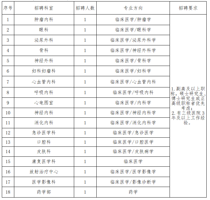 1.依據(jù)國家和學校相關規(guī)定享受相應的待遇和工作條件,符合醫(yī)院人才引進政策的享受相應等次(博士、學科帶頭人、業(yè)務骨干、碩士研究生、急需崗位本科畢業(yè)生)的待遇,含安家費、科研啟動費、租房補貼等,具體情況以人事科解釋為準。