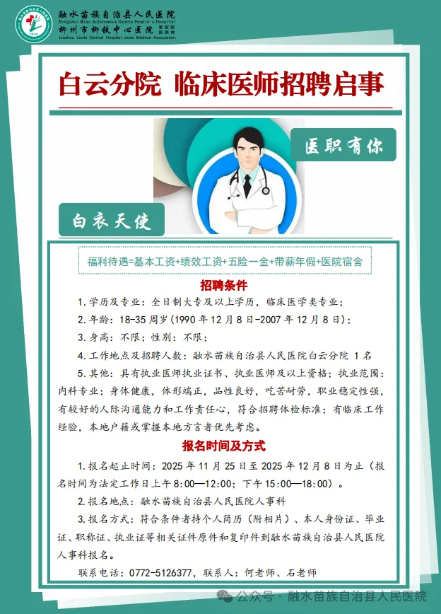 2025年融水苗族自治縣人民醫(yī)院緊密型醫(yī)共體白云中心衛(wèi)生院、永樂(lè)鎮(zhèn)衛(wèi)生院招聘