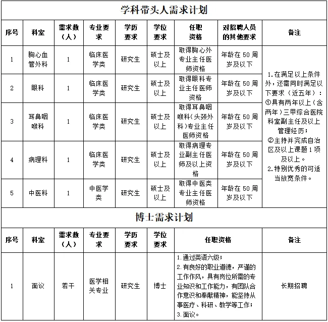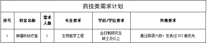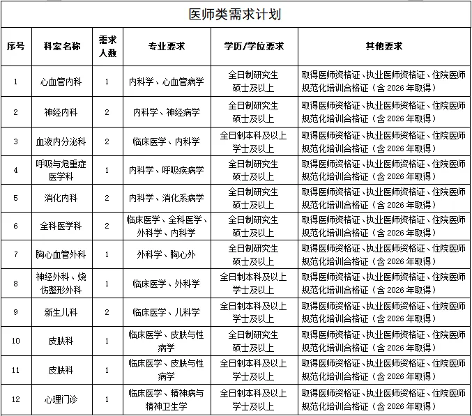 為進(jìn)一步完善現(xiàn)有人才隊(duì)伍,促進(jìn)醫(yī)院學(xué)科發(fā)展,提升醫(yī)院綜合實(shí)力,因業(yè)務(wù)發(fā)展需要,現(xiàn)面向社會(huì)進(jìn)行公開招聘,具體招聘崗位如下: