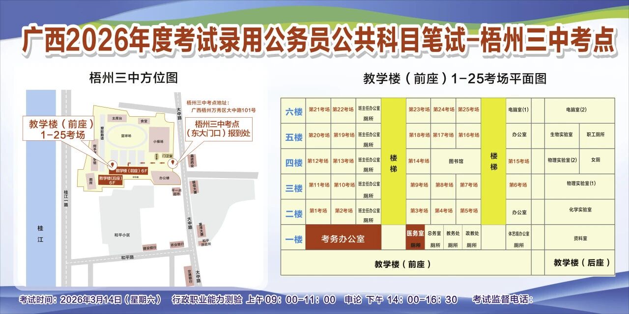 廣西2026年度考試錄用公務(wù)員(選調(diào)生)公共科目筆試梧州考點(diǎn)指引
