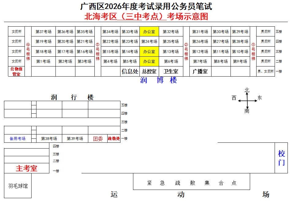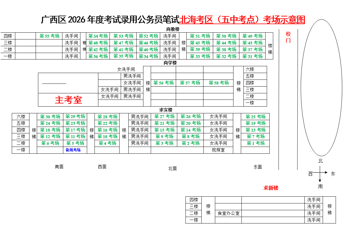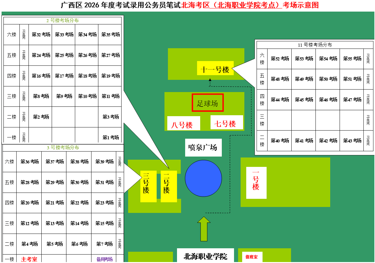 北海考區(qū)共設(shè)置6個考點,具體考點考場布置分別如下: