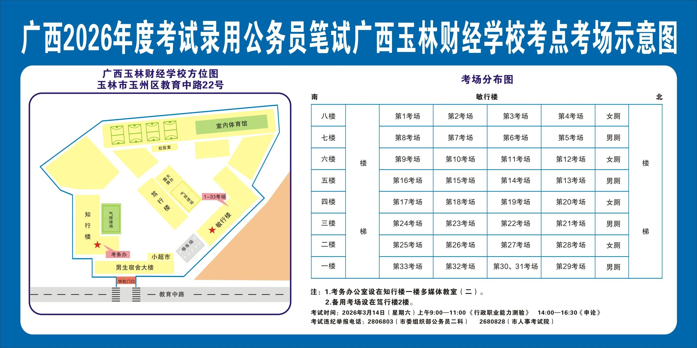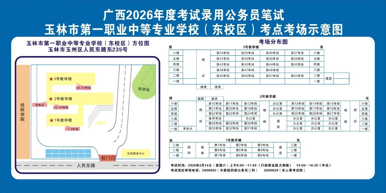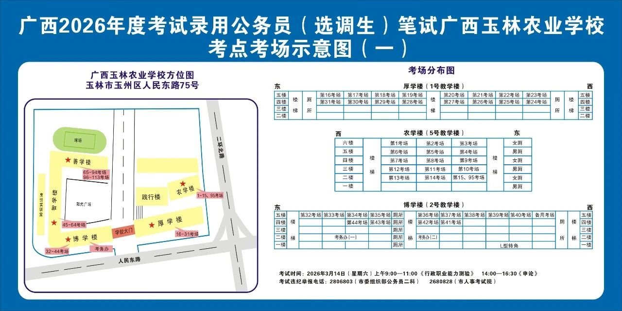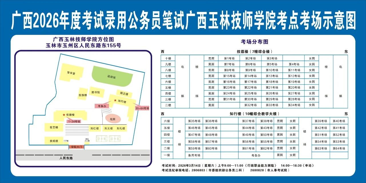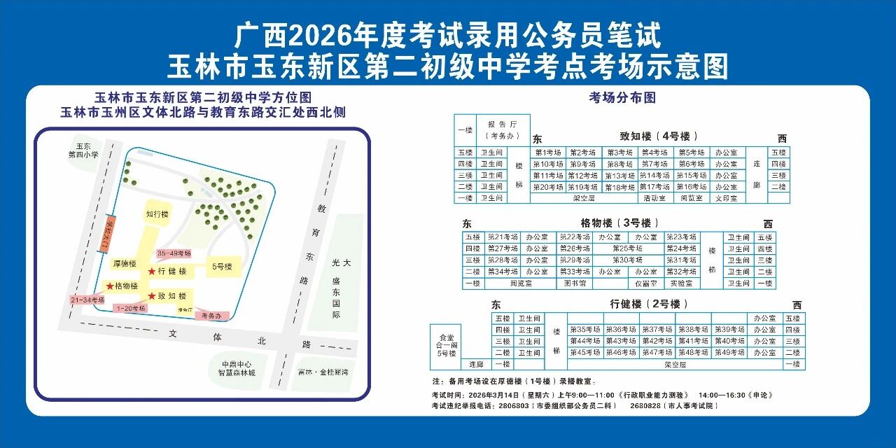 廣西2026年度考試錄用公務(wù)員(選調(diào)生)筆試將于3月14日舉行,為進(jìn)一步提升玉林考區(qū)服務(wù)保障質(zhì)量,現(xiàn)就有關(guān)注意事項(xiàng)提示如下,請(qǐng)廣大考生做好應(yīng)試準(zhǔn)備工作,準(zhǔn)確掌握考試時(shí)間、考點(diǎn)地址及相關(guān)注意事項(xiàng)。