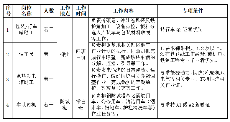 現(xiàn)根據(jù)業(yè)務(wù)發(fā)展需要,興遠(yuǎn)公司面向社會(huì)誠聘技術(shù)、技能工人,為柳鋼柳州、防城港基地提供服務(wù)。